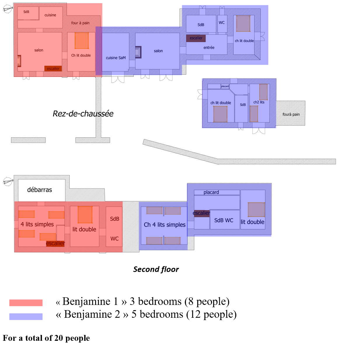 to the castle. This can be rent from 3 to 8 rooms (from 2 to 20 people) according to your preference.
